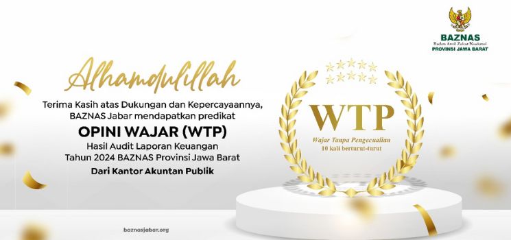 Prestasi ini menandai opini WTP ke-10 secara berturut-turut sejak laporan keuangan tahun 2015, menjadi bukti nyata bahwa BAZNAS Jabar senantiasa menjaga integritas dan transparansi dalam setiap aktivitas keuangannya.