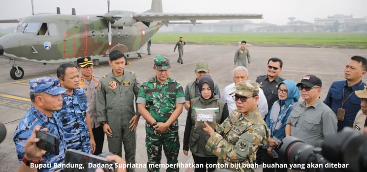 Dengan pasawat Skadron Udara 4 Lanud Abdulrachman Saleh Malang, Jawa Timur, Dadang Supriatna bersama Ketua DPRD, Renie Rahayu Fauzi, Forkopimda Kabupaten Bandung take off dari Lanud Husen Sastranegara untuk menerbarkan biji buah-buah yang dikumpulkan dari siswa SD, SMP dan SMA se – Kabupaten Bandung.