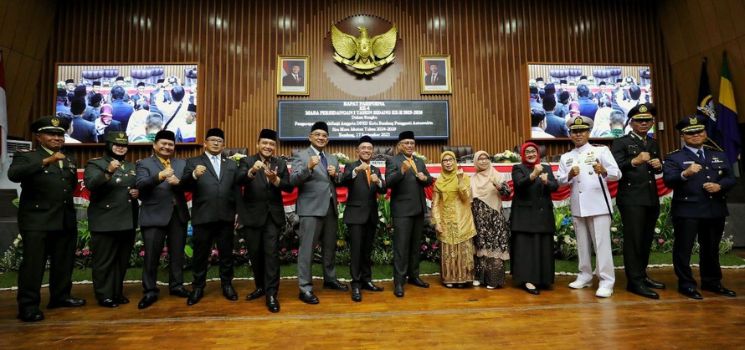 Usai pengucapan sumpah, prosesi dilanjutkan dengan penandatanganan berita acara, penyematan tanda keanggotaan DPRD, serta penyerahan Surat Keputusan Gubernur Jawa Barat.
