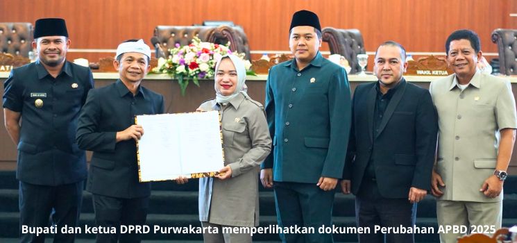 Tepat pukul 12.06 Wib, sebelum dokumen Perubahan APBD Kabupaten Purwakarta TA 2025 ditandadatangani, pimpinan rapat meminta persetujuan kepada anggota DPRD yang hadir saat itu sebanyak 38 orang dan kepada Bupati Purwakarta Saepul Bahri Binzein.