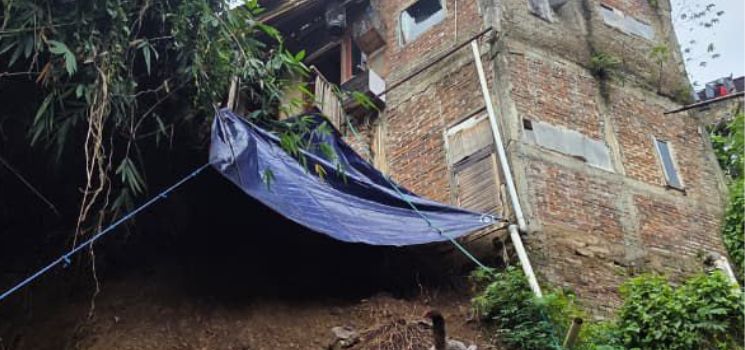 Fondasi bangunan dilaporkan mulai bergeser dan posisi rumah kini berada tepat di atas lereng labil.