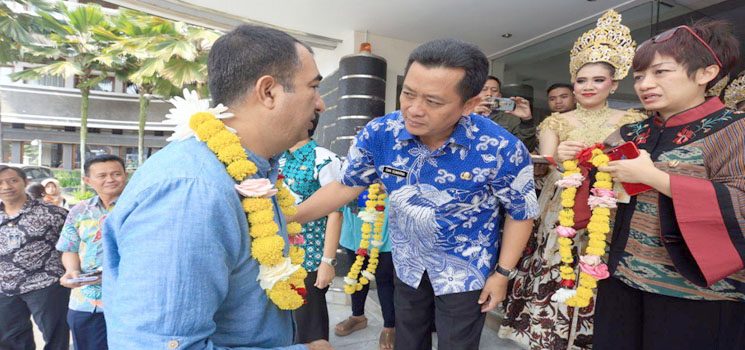 SEKRETARIS Daerah Kota Bandung, Ema Sumarna menyambut rombongan Delegasi Asia Africa Festival (AAF) 2019 di Hotel Savoy Homann, Jumat (28/6/2019). Mereka berasal dari sejumlah negara sahabat di Asia dan Afrika.