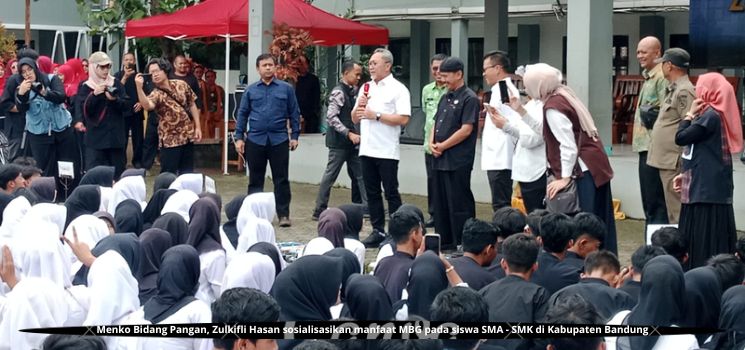 MENTERI Koordinator (Menko) Bidang Pangan Zulkifli Hasan (Zulhas) memaparkan keunggulan program unggulan Presiden Prabowo yakni Makan Bergizi Gratis (MBG) pada siswa SMA dan SMK di Kabupaten Bandung.Kamis (22/1/2026)