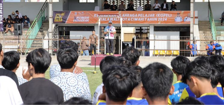 PENJABAT (Pj) Wali Kota Cimahi Dicky Saromi secara resmi membuka Kejuaraan Olahraga Pelajar (Kopel) Piala Wali Kota Cimahi tahun 2024 di Stadion Sangkuriang Kota Cimahi, Jumat (01/03). Keikutsertaan para pelajar dalam kejuaraan ini merupakan bentuk komitmen nyata Pemerintah Daerah Kota Cimahi dalam rangka memajukan pembinaan prestasi bagi para siswa-siswi di Kota Cimahi yang nantinya akan menjadi penerus bangsa.