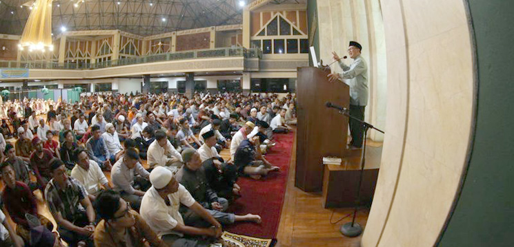 “Ketika azan berkumandang, setop kegiatan kita, pekerjaan hentikan dulu. Kita ambil wudu dan salat berjamaah dengan tepat waktu,” tegasnya.