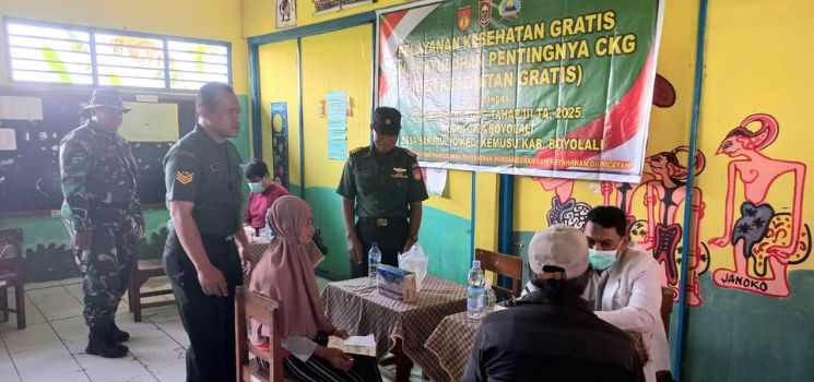 Sejak pagi, masyarakat mulai berdatangan untuk mendapatkan layanan kesehatan yang difasilitasi oleh Satgas TMMD bekerja sama dengan tim medis dari Dinas Kesehatan Kabupaten Boyolali serta Klinik Pratama 24 Boyolali. Sedikitnya 100 orang mendapatkan pemeriksaan dan pengobatan secara cuma-cuma.