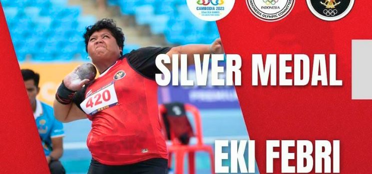 EKI Febri Ekawati atlet Tolak Peluru asal Jawa Barat; harus puas meraih Medali Perak dalam nomor tolak peluru di arena Sea Game XXVII-2023, Kamboja yang digelar 5 – 17 Mei 2023.